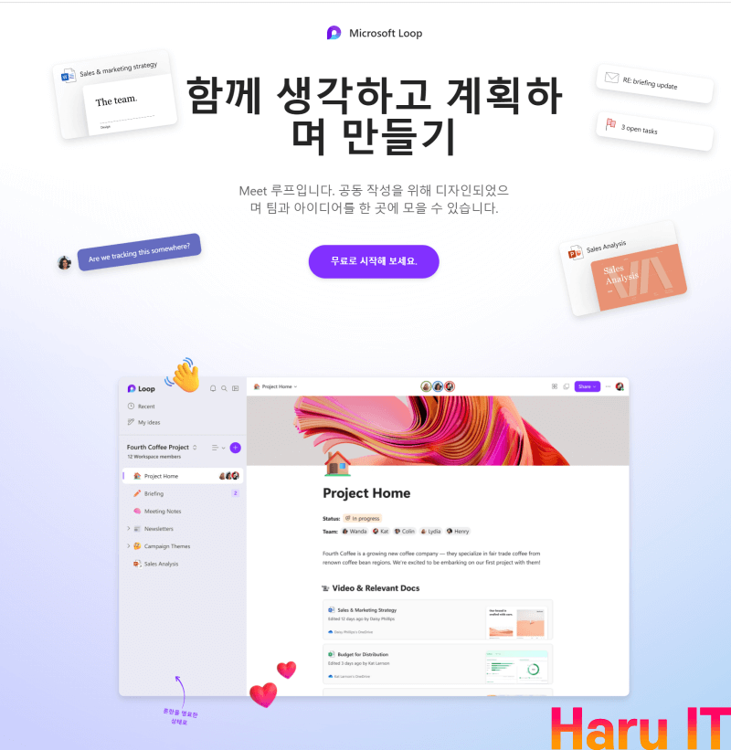 먼저, https://loop.microsoft.com/ 에 접속해 ‘무료로 시작’ 버튼 클릭해 회원 가입해야 합니다.